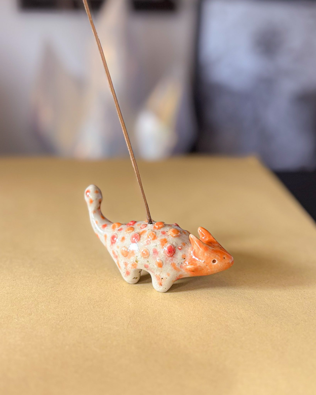 Figurka ceramiczna ręcznie robiona, z dziurką na kadzidełko lub suszkę.